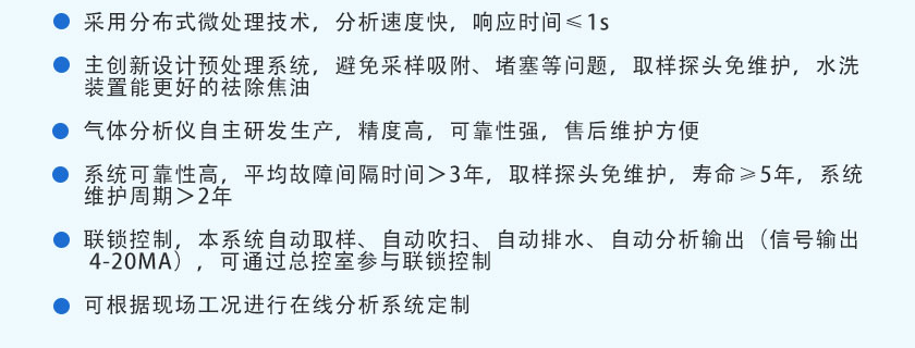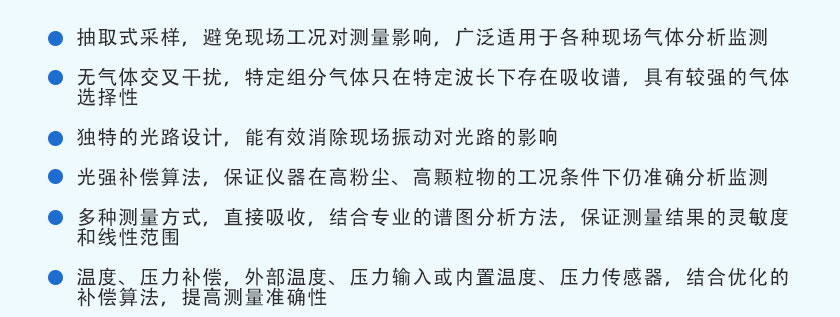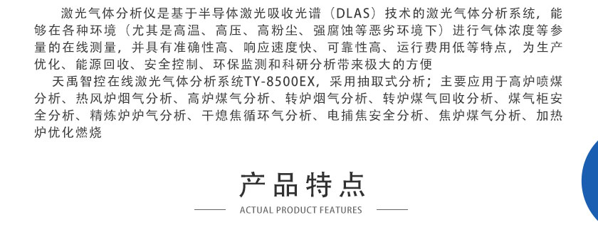 激光氣體分析儀是基于半導體激光吸收光譜(DLAS)技術的激光氣體分析系統,能夠在各種環境(尤其是高溫、高壓、高粉塵、強腐蝕等惡劣環境下)進行氣體濃度等參量的在線測量,并具有準確性高、響應速度快、可靠性高、運行費用低等特點,為生產優化、能源回收、安全控制、環保監測和科研分析帶來極大的方便,在鋼鐵冶金、石油化工、環境保護和能源電力等行業已得到廣泛的應用。 天禹智控在線激光氣體分析系統TY-8500EX,采用抽取式分析,主要應用于高爐噴煤分析、熱風爐煙氣分析、高爐煤氣分析、轉爐煙氣分析、轉爐煤氣回收分析、煤氣柜安全分析、精煉爐爐氣分析、干熄焦循環氣分析、電捕焦安全分析、焦爐煤氣分析、加熱爐優化燃燒