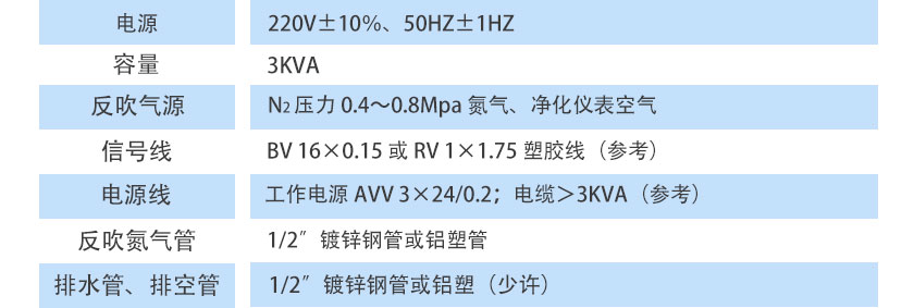 N2壓力 0.4~0.8Mpa氮氣、凈化儀表空氣