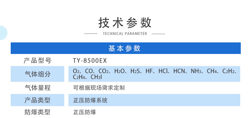 • 在線激光氣體分析儀 TY-6500 在線激光氣體分析儀TY-6500采用國際最先進的TDLAS激光技術,主要用于測量各種氣體中的HF、HCL、O2、CO、CO2、H2O、O2、NH3、CH4?等氣體體積濃度及熱值。