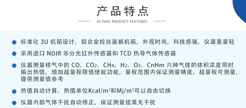 CO、CO2、CH4、CnHm :NDIR非分光紅外; H2:TCD熱導(dǎo), O2:ECD電化學(xué) |