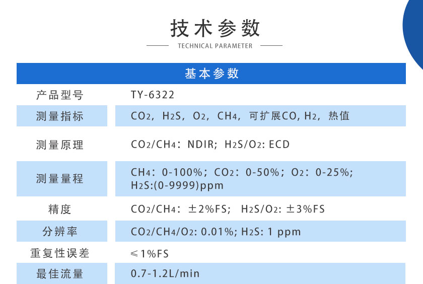 CO、CO2、CH4、:NDIR非分光紅外 H2:TCD熱導, O2、H2S:ECD電化學 |