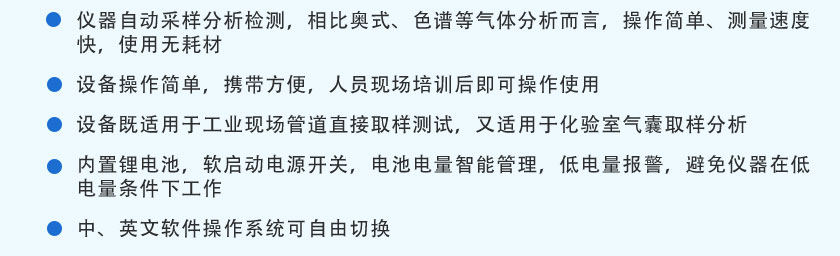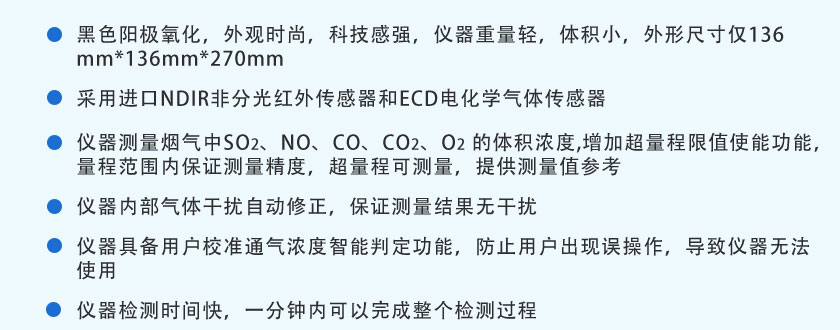 SO2、NO、CO、CO2 : NDIR非分光紅外;O2 :電化學; |