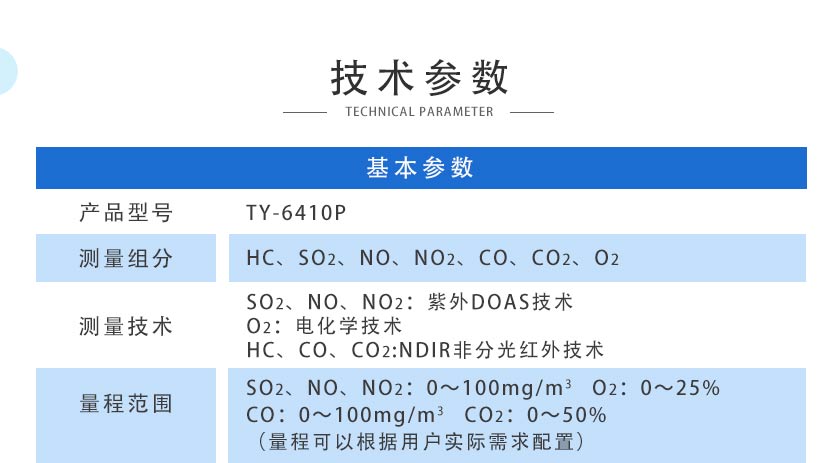 SO2、NOx:紫外DOAS技術(shù);O2:電化學(xué)技術(shù);CO:電化學(xué)技術(shù)/Tdlas激光技術(shù);CO2:NDIR非分光紅外技術(shù) |